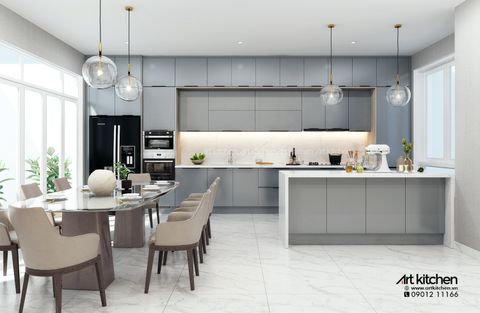 Tủ bếp đẹp - D030 Xu hướng sử dụng tấm MDF Melamine dùng trong trang trí nội thất ngày càng trở nên phổ biến ở hầu hết mọi nơi trên thế giới vì độ an toàn và thân thiện với môi trường, tính thẩm mỹ cao và giá thành hợp lý của nó.
